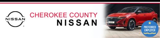 Cherokee County Nissan is a full-service dealership serving drivers in Canton and Marietta. You will enjoy working in our new, modern dealership with a large showroom and new and used car lots, as well as a state-of-the-art Service Department.